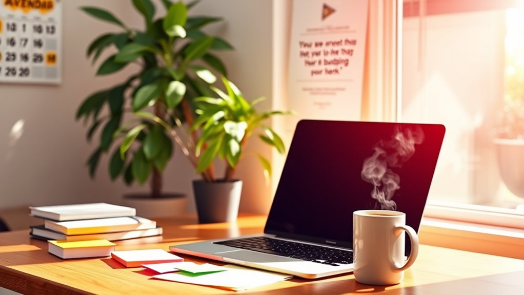 You can stay motivated by using reward systems, celebrating small wins to maintain enthusiasm. Additionally, accountability partners help keep you on track and motivated by providing support and encouragement. These tools make budgeting more engaging and less overwhelming, ensuring you stay committed long-term. By combining rewards with accountability, you reinforce positive habits, making it easier to avoid burnout and reach your financial goals with confidence.