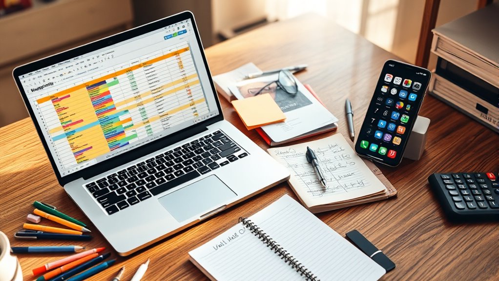 A DIY budgeting spreadsheet offers customization and control, letting you tailor categories and formulas to fit your needs, but it requires technical skills and ongoing maintenance. Paid apps provide automation, security, and ease of use, saving you time but often at a cost and with less flexibility. Your choice depends on how much you value personalization versus convenience. Stick around to discover which option might suit your financial goals best.