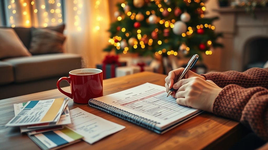 The holiday season often brings the temptation to overspend, but creating a budget can help you enjoy the festivities without financial stress. As you plan your spending, focusing on gift giving strategies is essential. Think about personalized, meaningful gifts rather than expensive items. Often, a heartfelt note or a handmade gift can mean just as much as something costly. Setting a specific limit for each person on your list prevents impulse buys and keeps your spending in check. Consider making a list of recipients and assigning a realistic budget to each, so you stay organized and avoid last-minute splurges. This approach not only controls your expenses but also ensures you’re thoughtful without overspending.