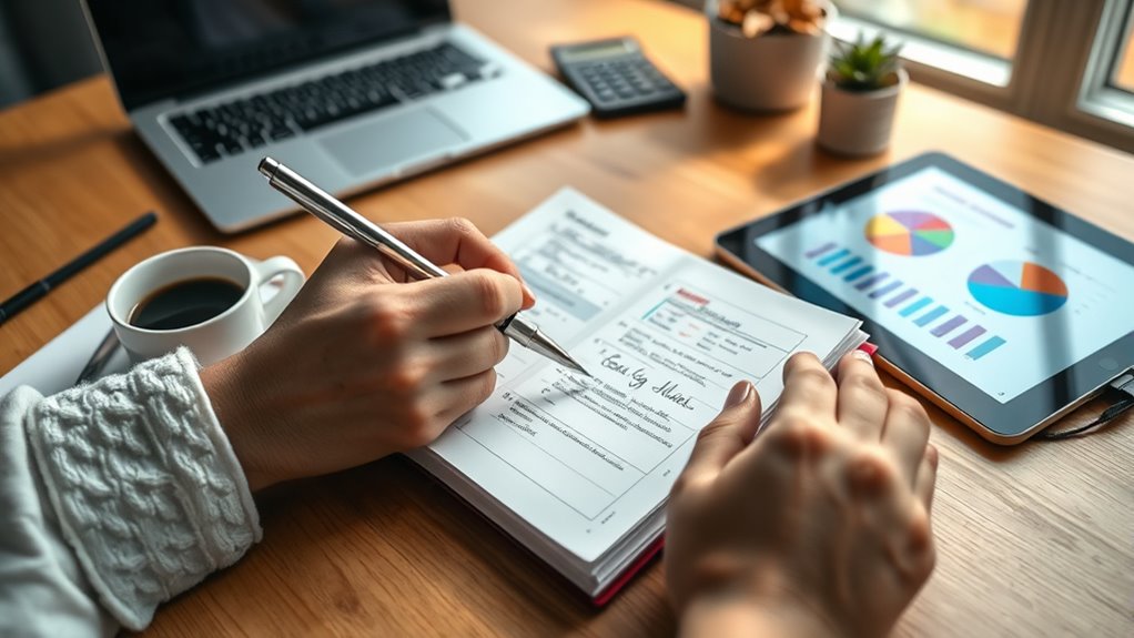 Creating your first budget is simple once you track all your expenses and list your income. Set clear financial goals that are specific and achievable, and categorize your spending to see where your money goes. Compare your total expenses with your income to find areas where you can cut back. Regularly update your budget to stay on track. Keep exploring these steps, and you’ll gain confidence in managing your money effectively.