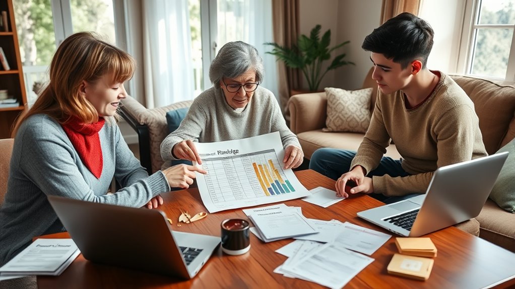 You should prioritize open financial communication to maintain transparency and build trust among family members. Regularly discuss expenses, budgets, and financial goals together, ensuring everyone feels included and informed. Be honest about your finances and encourage others to do the same. This proactive approach fosters trust, minimizes misunderstandings, and keeps everyone on the same page, strengthening your family’s financial harmony and ensuring a supportive living environment.