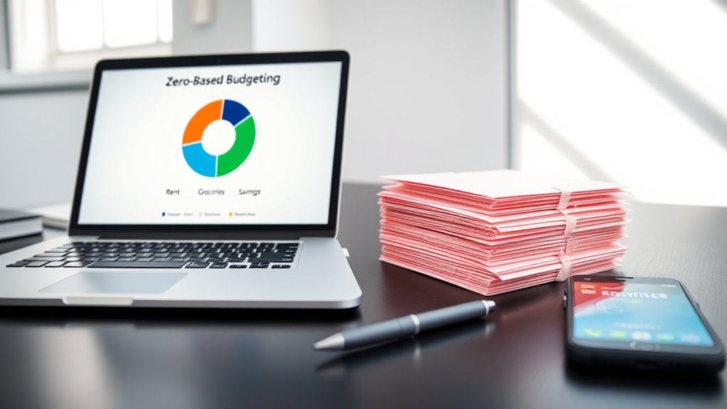 By adopting zero-based budgeting, you guarantee every dollar has a purpose. Imagine you’re starting a small business and allocate funds carefully—cutting unnecessary expenses and investing in growth. With this approach, you can see where your money goes and make smarter decisions. Just like a startup founder who trims costs and reallocates savings into marketing, you’ll gain control and boost your financial health. Zero-based budgeting puts you in charge of your money’s true purpose.