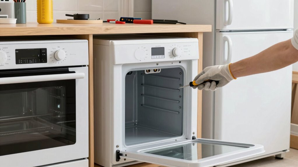 Think of this routine as a universal shield for your appliances, but remember, appliance safety varies. While most appliances benefit from simple maintenance using basic tools, some delicate or complex models might require professional care. Always check your manufacturer’s guidelines before starting. Using appropriate maintenance tools guarantees safety and effectiveness, preventing damage. When in doubt, consult a specialist to avoid risking your appliance’s longevity or warranty.