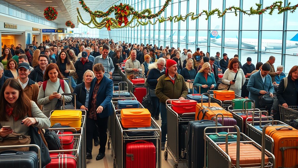 During holiday travel, watch out for hidden costs like costly baggage fees and other hidden fees that can sneak up on you. Airlines often charge extra for checked bags, priority boarding, or seat selection, so be sure to read the fine print. Also, consider additional expenses like airport parking, food, and transportation. Planning ahead helps you avoid surprises and keeps your travel budget under control.