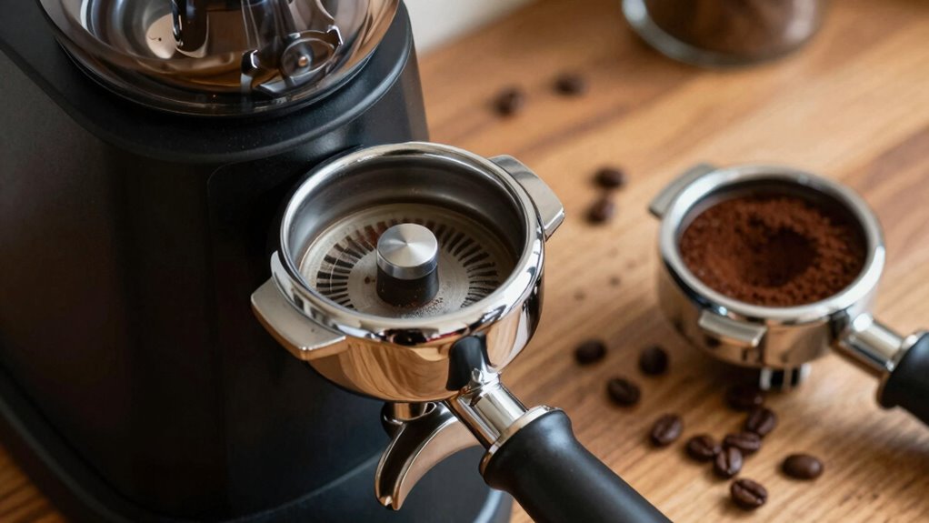 When choosing a grinder, focus on its ability to produce consistent grounds, as this directly impacts your espresso quality. Look for models with adjustable settings so you can fine-tune your grind size for perfect extraction every time. Prioritizing these features helps you elevate your espresso experience from the start.