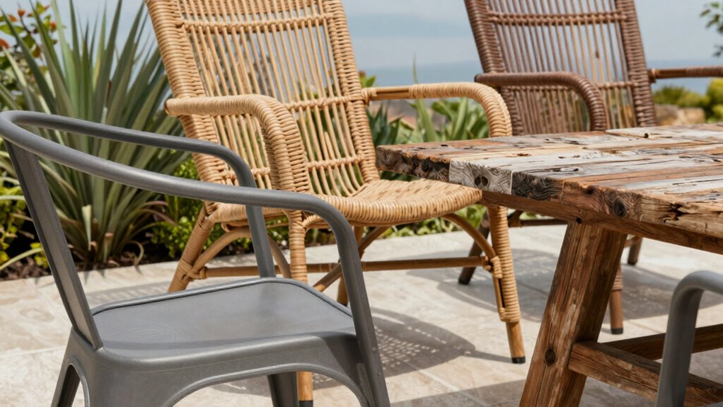 Choosing the right patio furniture material depends on your personal style and budget. Consider how it complements your indoor decor and aligns with your values on material sustainability. Here are three tips to guide your choice: