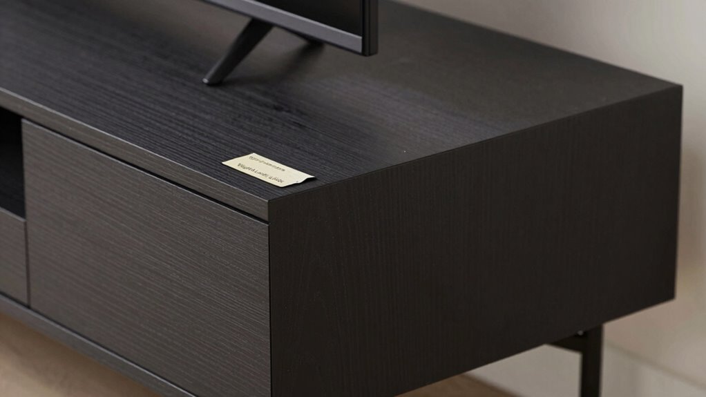 Check the manufacturer’s label and material durability to ensure your TV stand supports your weight requirements safely.