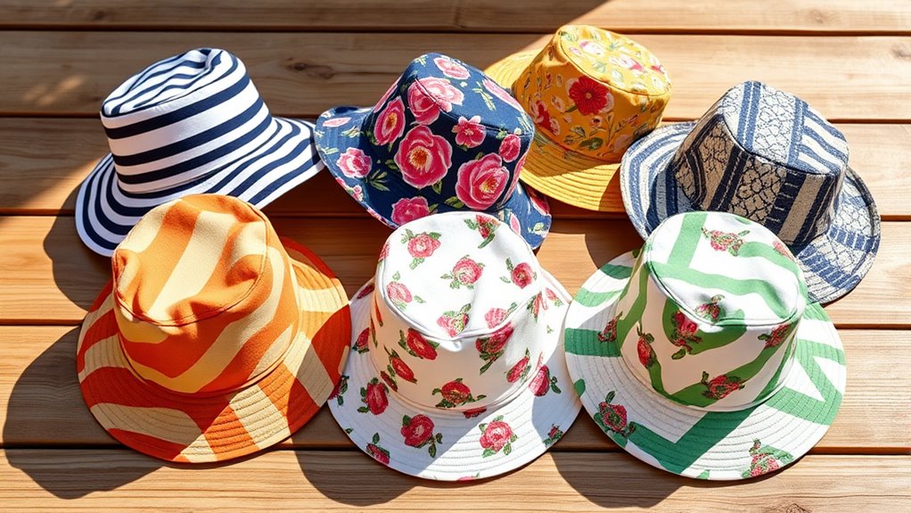 If you’re after stylish cotton bucket hats that shield you from the sun, I recommend checking out options like the Hat Depot Bucket Hat, Falari’s unisex models, versatile washed cotton hats from 6 Pieces, and the denim wide-brim outdoor hats. These hats combine UPF 50 sun protection with comfortable, high-quality fabrics, and trendy designs suitable for various occasions. Want to find out which one fits your style and outdoor needs best? Keep going to discover more details.