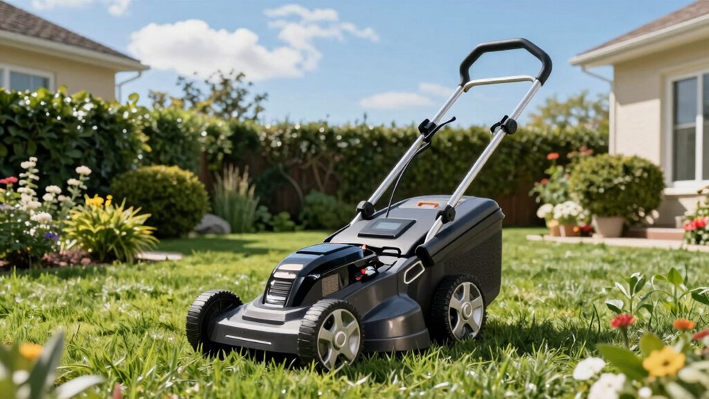 You might worry about safety, but these electric mowers are packed with features to keep you safe. I’ve found they include blade brakes that stop immediately when you release the handle, safety switches that prevent accidental startups, and sturdy ergonomic designs for better control. Plus, many have low-profile guards to protect your feet. These thoughtful features make mowing safer and more confident, even if you’re new to electric tools.