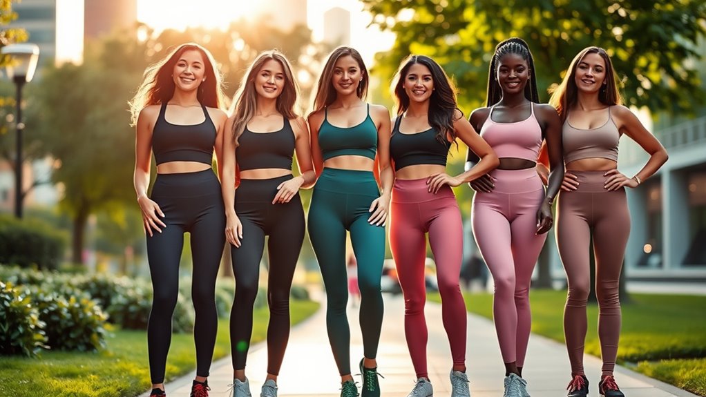 If you’re looking for the best high-waist athleisure leggings that perfectly blend comfort and style, I’ve got you covered. I recommend options made from breathable, stretchy fabrics with tummy control, supportive waistbands, and trendy designs like flares or bold colors. Many feature pockets for convenience and stay in place during activity. Whether you want something for workouts or casual wear, these leggings offer the perfect mix of function and fashion. Keep exploring to find your perfect fit.