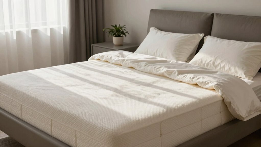 When selecting a mattress to help manage back pain, paying attention to material safety standards is just as important as comfort and support. Certifications like CertiPUR-US and OEKO-TEX guarantee the foam and fabrics are free from harmful chemicals and toxins, creating a safer sleeping environment. Mattresses that meet these standards undergo rigorous testing to eliminate substances like formaldehyde, heavy metals, and ozone-depleting chemicals, reducing health risks. Safety-certified mattresses also typically avoid fiberglass, preventing skin irritation and respiratory issues. Additionally, these mattresses emit low VOCs, improving indoor air quality and overall sleep health. Choosing a mattress with proven safety standards not only supports your back but also promotes a healthier, allergen-free sleeping environment for sensitive individuals.