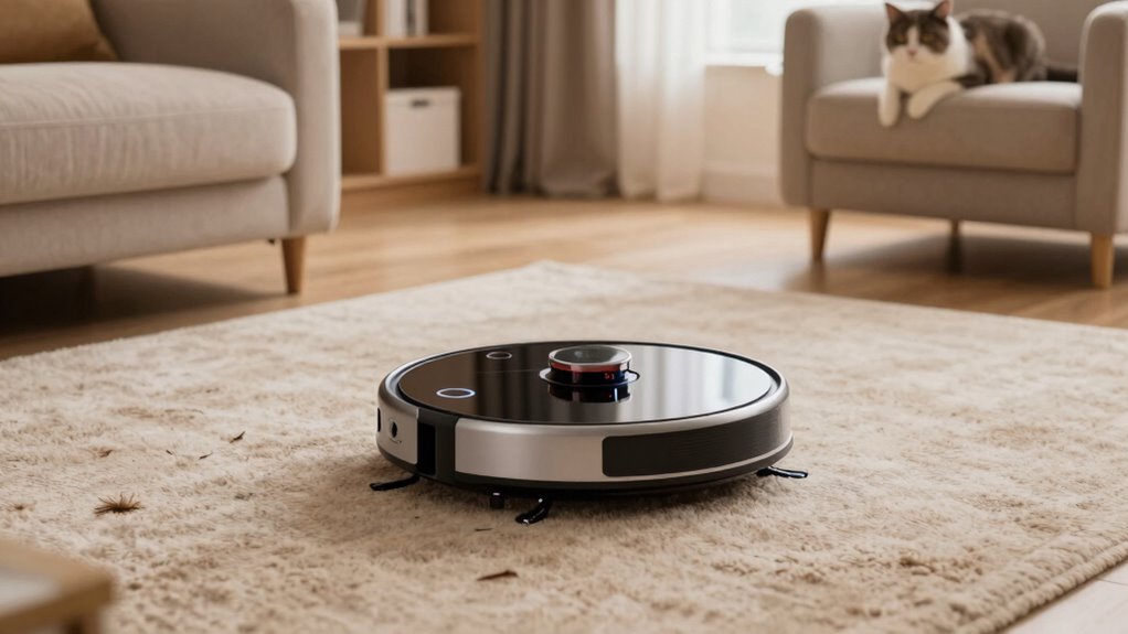 I recommend maintaining your robot vacuum at least once a week for excellent pet hair cleaning. I personally check the brushes and filters regularly, especially after heavy shedding periods, and empty the bin frequently. Scheduled deep cleans and filter replacements every few months also help keep performance outstanding. Staying consistent guarantees your vacuum works efficiently, keeps pet hair under control, and extends its lifespan.