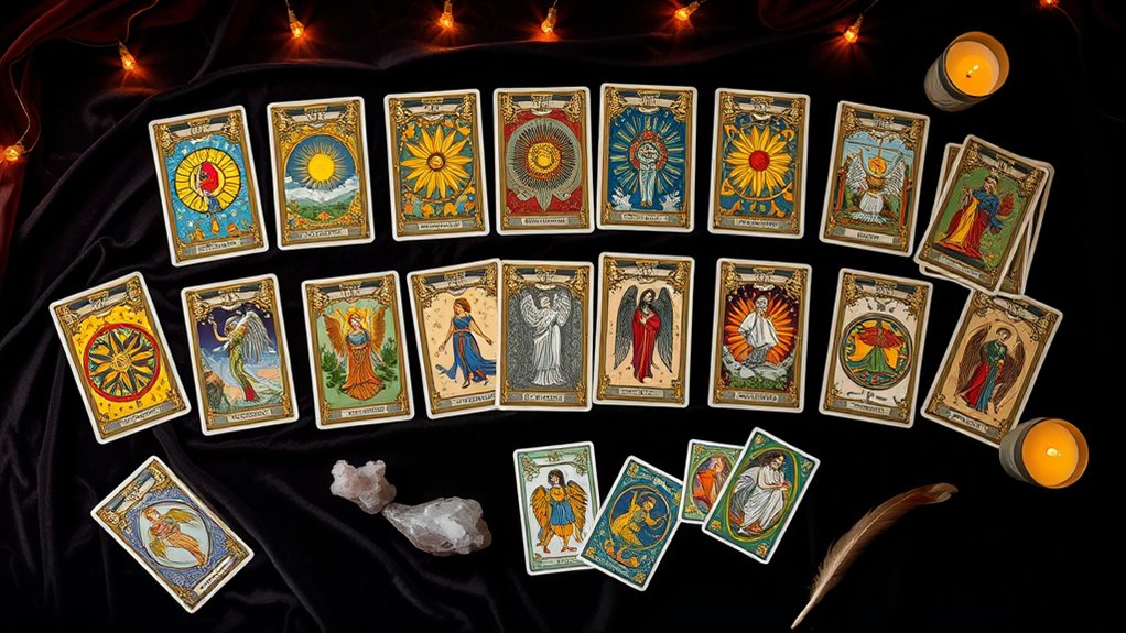 Did you know some decks are better suited for specific divination types? I’ve found that Rider-Waite decks excel for general readings, while Lenormand decks offer more precise, day-to-day insights. If you’re into astrology, certain decks incorporate celestial symbols that deepen your connection. Choosing the right deck feels like a lucky coincidence—trust your intuition, and you’ll find one that resonates perfectly with your style and the questions you seek answers to.