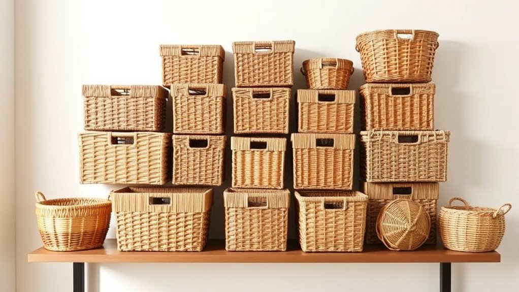 Yes, wicker storage baskets can be suitable for outdoor use, but it depends on their treatment. I recommend choosing baskets specifically designed for outdoor environments, as they’re treated to resist moisture and sun damage. Regular wicker isn’t ideal since it can warp or rot when exposed to the elements. So, if you want durability, opt for weather-resistant options or keep your baskets in covered areas to prolong their lifespan.