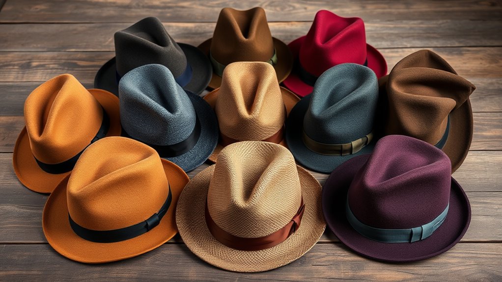 Durability and proper maintenance are essential to guarantee your wool fedora stays looking sharp and lasts for years. Wool fedora hats are quite durable and can handle daily use, but regular cleaning helps preserve their appearance. Gentle brushing and spot cleaning keep the felt in top shape and extend the hat’s lifespan. Wool hats are somewhat water-resistant, but heavy rain can damage them if not dried properly or treated with water-repellent products. To maintain their shape, avoid crushing the hat and use steam or shaping tools cautiously when needed. Proper storage is key—keep your fedora in a cool, dry place, preferably in a hat box or on a stand. This prevents deformation and markedly prolongs its durability.